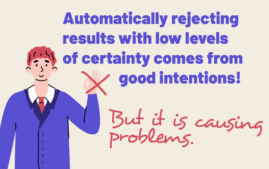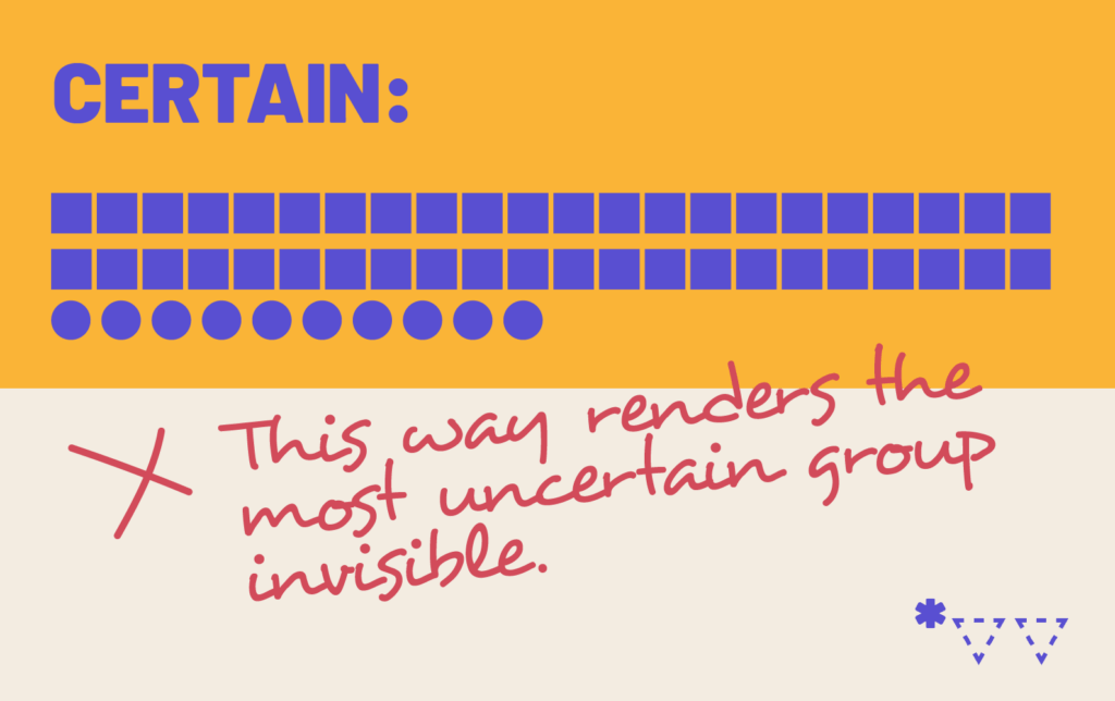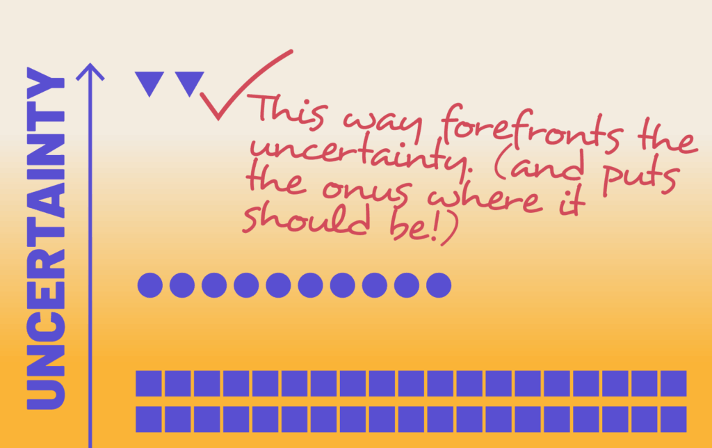 We need to learn to love uncertainty and get better at explaining it to our data consumers. The assumption that we need the term “not statistically significant” because our readers can’t possibly understand levels of uncertainty, because we need a shield to hide the uncertainty our project design has resulted in, or because we think that it’s easier to discount the data of entire groups than to explain the concept of a confidence interval is not only oppresive, but it holds everyone back from meaningful data literacy.