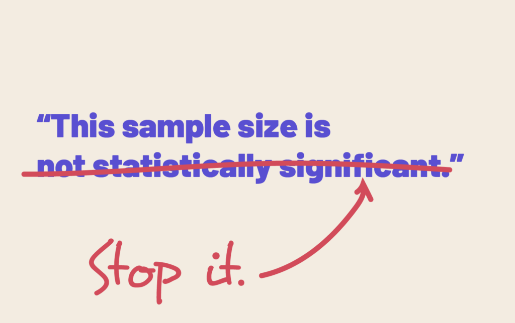 The next time you instinctively go to write off a small sample size as “not statistically significant”, remember that that’s incorrect and what you really mean is, based on what we have, we don’t really know…